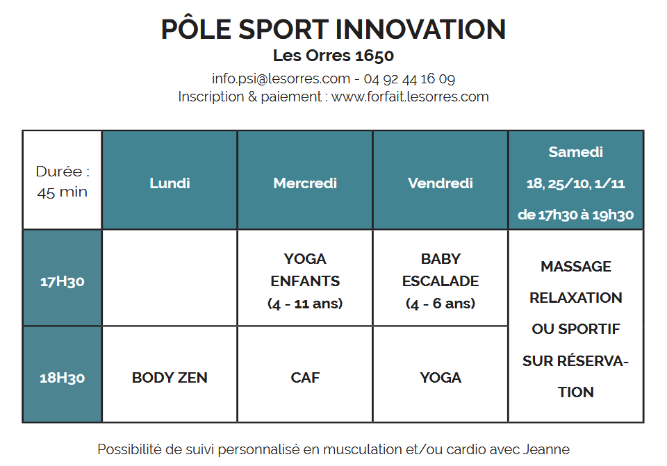 Abonnement nominatif valable d'automne** Vente uniquement en caisse à l'accueil du Pôle Sport Innovation | 60 € |